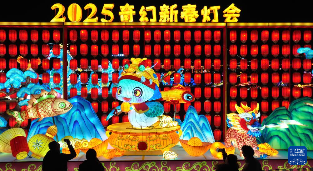 1月18日晚,河南洛阳2025年隋唐河洛文化庙会暨新春灯会试亮灯,吸引市民游客观赏。