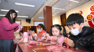 1月20日,小朋友在广州市一德路市场选购春节饰品。