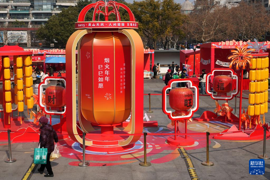 1月20日,人们在杭州2025吴山庙会新春购物节上选购年货。