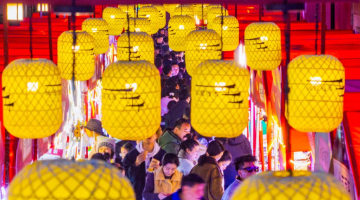 1月21日,人们在南京夫子庙景区赏灯游玩。