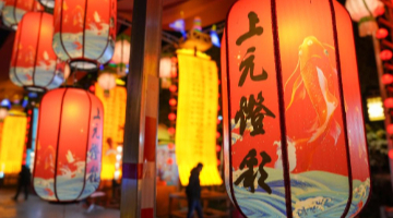 1月21日,在马来西亚吉隆坡天后宫,市民拍摄节日彩灯。