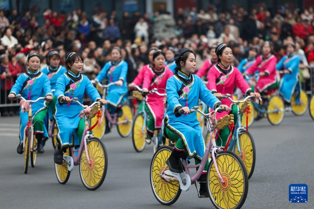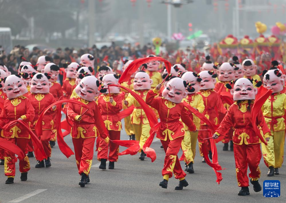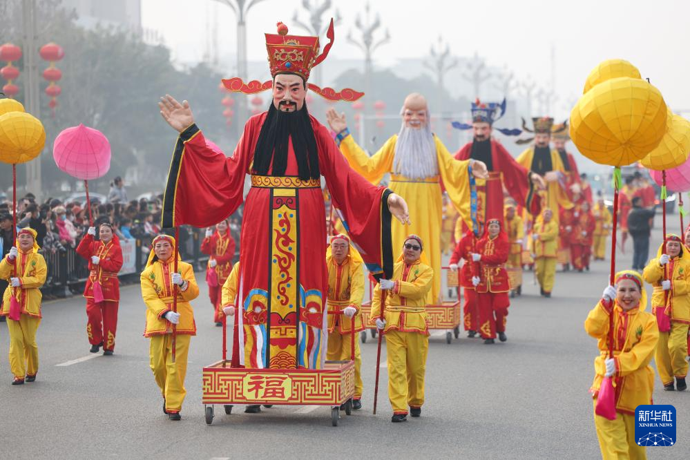 1月22日在绵竹年画节开幕式上拍摄的巡游队伍。