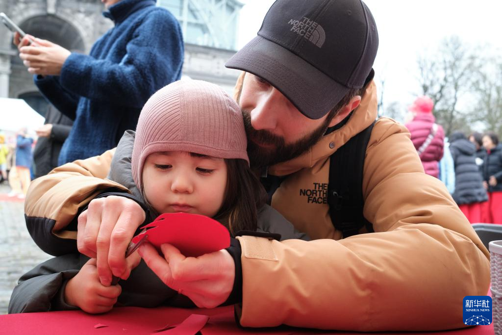 1月25日,人们在比利时首都布鲁塞尔举行的“中国春节游园庙会”活动上体验剪纸。