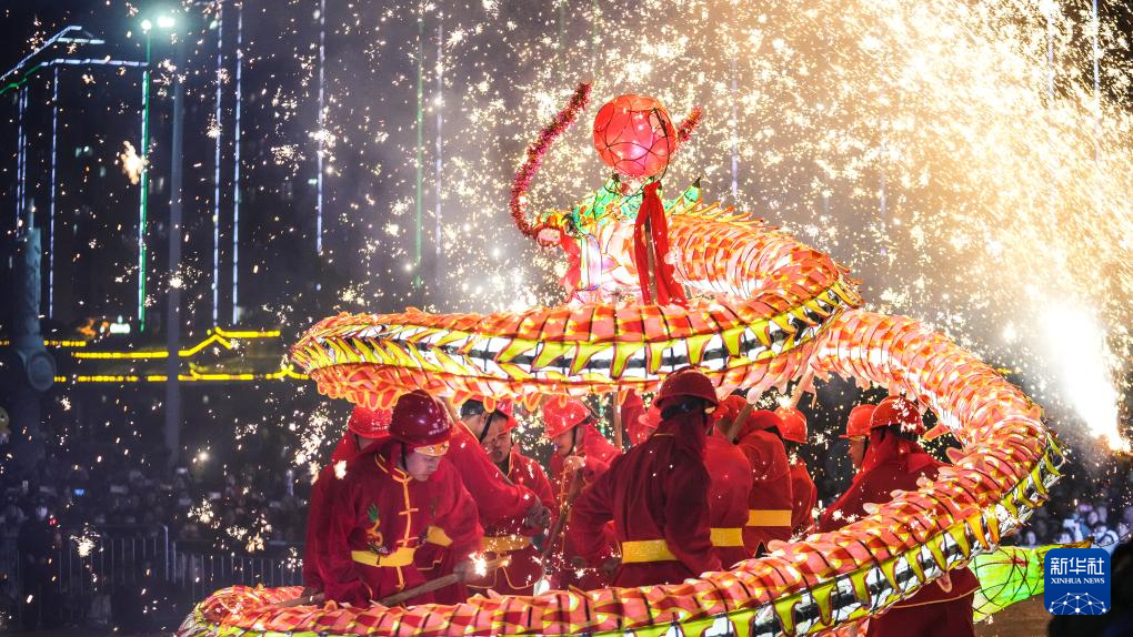 当日,贵州省黔东南苗族侗族自治州台江县举行2025年苗族“舞龙嘘花”非遗展演系列活动。100多支舞龙队齐聚台江县城,欢庆元宵节的到来。2021年,苗族“舞龙嘘花”习俗入选国家级非物质文化遗产名录。