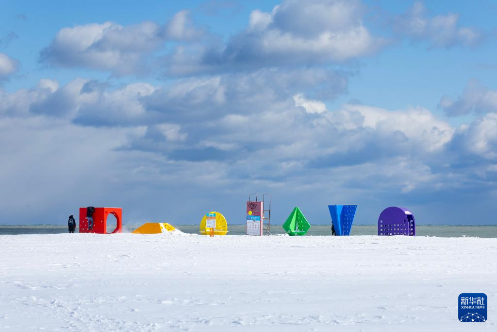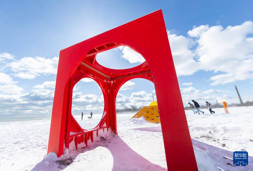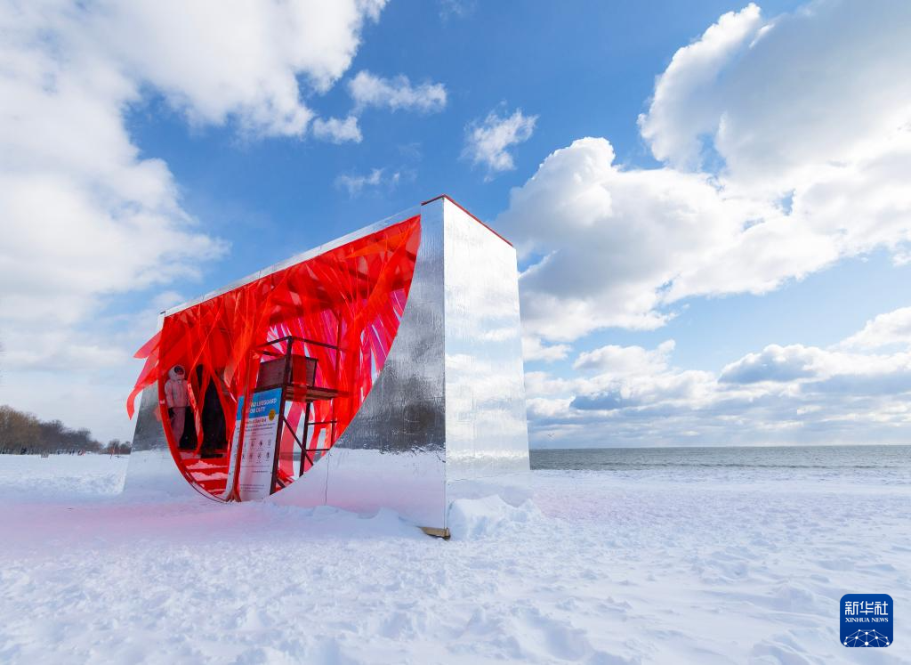 当日,多伦多2025年“冬季小筑”国际设计比赛获奖作品在安大略湖畔展出。“冬季小筑”是一项以水岸救生员岗亭为基础的年度国际设计比赛。