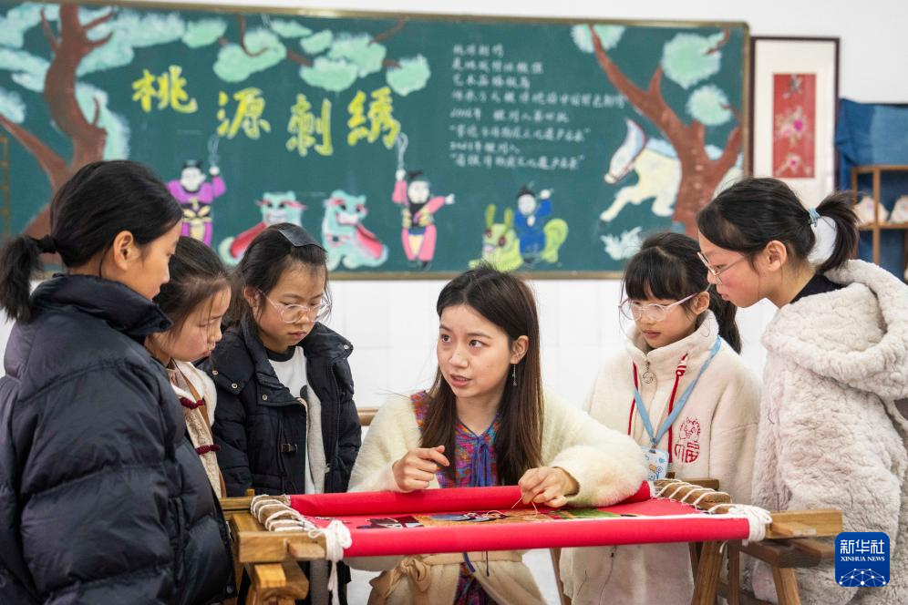 近年来,湖南省常德市桃源县充分利用地方文化资源,常态化开展非遗进校园活动,将当地非遗项目——桃源刺绣技艺引进课堂,定期邀请非物质文化遗产代表性传承人走进校园,进行传统文化授课,让学生亲身感受非物质文化遗产的魅力,让传统文化薪火相传。