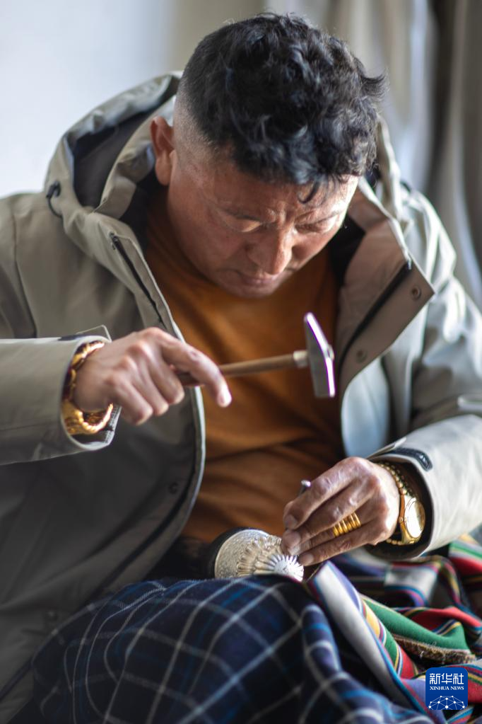 3月6日,扎西吉彩的手工匠人在给银器塑形。