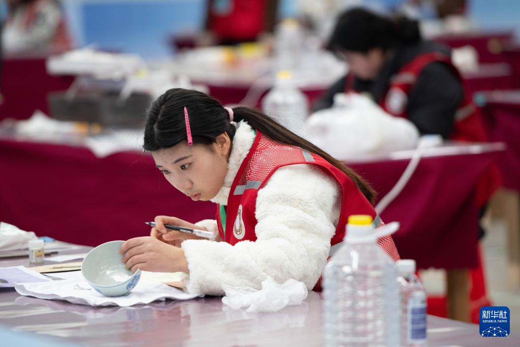 3月6日,参赛选手在参加陶瓷文物修复师项目比赛。