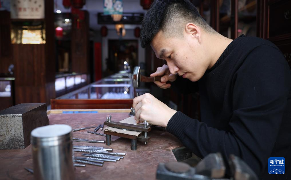 一张银片锤万遍,一件银饰藏匠心。传承120余年的老世兴金银制作技艺工艺精细、纹样丰富、造型独特。作为年轻的技艺传承人,孙朋说,“学习制作银艺不仅让我掌握了一门技艺,更让我感受到传统文化的魅力。我希望未来能像师父一样,将这门技艺传承下去。”