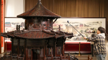 3月18日,游客在贵州省黎平县肇兴侗寨里的侗族文化展示中心拍摄。