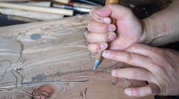 5月25日,布达拉宫贝叶经实验性修复小组实验室工作人员在对用于贝叶修复的颜料进行研磨处理。