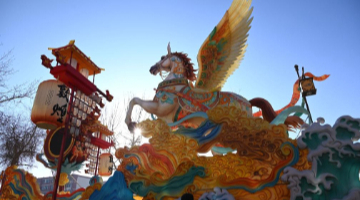 1月3日,在哈尔滨冰雪大世界进行的第37届中国·哈尔滨国际冰雕比赛进入第二天赛程,来自12个国家的76位选手在严寒中精雕细琢,参赛作品已芳容初现。