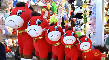 1月10日,孩子们在捷克布拉格博物馆玩木偶。