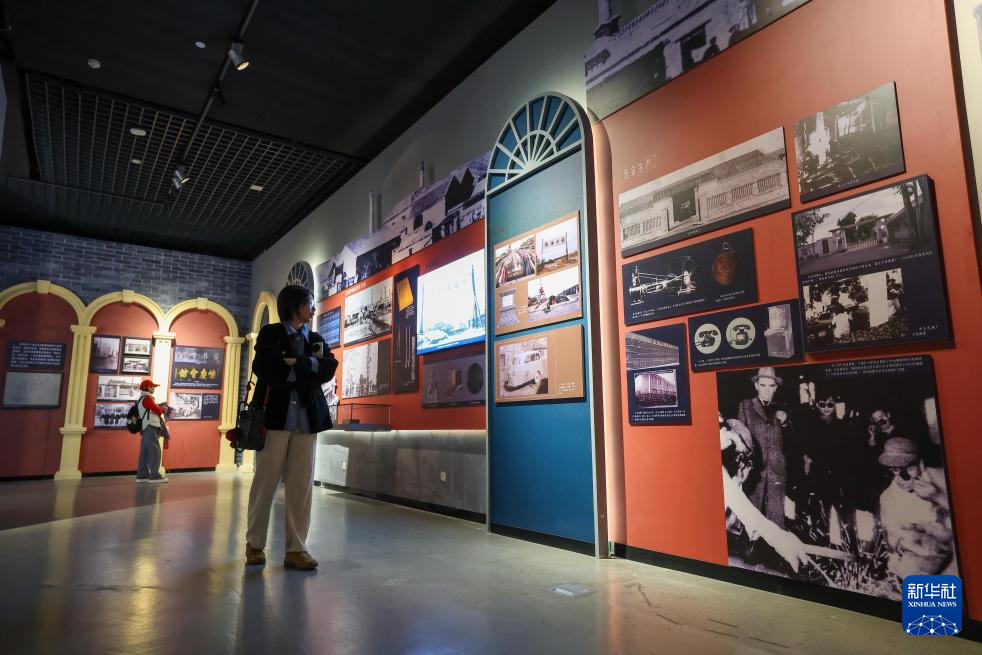 1月13日,市民在天津博物馆参观“实业兴邦——近代天津工商业展”,了解天津劝业场相关历史背景。