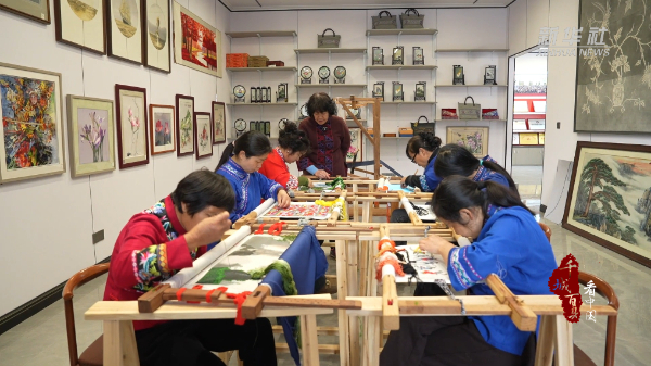 走进湖南省张家界市永定区王家坪镇马头溪村土家族刺绣非遗工坊,绣娘们围坐案前,飞针走线、凝神创作,省级非物质文化遗产代表性项目土家族刺绣代表性传承人张绣云在一旁全程指导,从制稿、临稿、配色到绣织,每一道工序都精益求精。