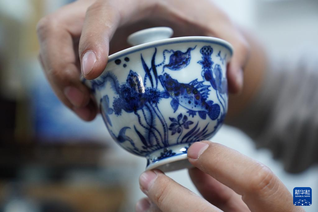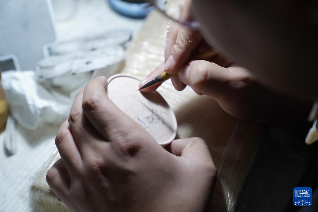 曹浪在创作青花瓷(3月11日摄)。