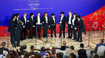 3月31日,美国耶鲁大学威芬普夫斯阿卡贝拉合唱团在北京开展文化交流活动,现场演绎多首经典歌曲,以音乐为纽带,传递友谊。
