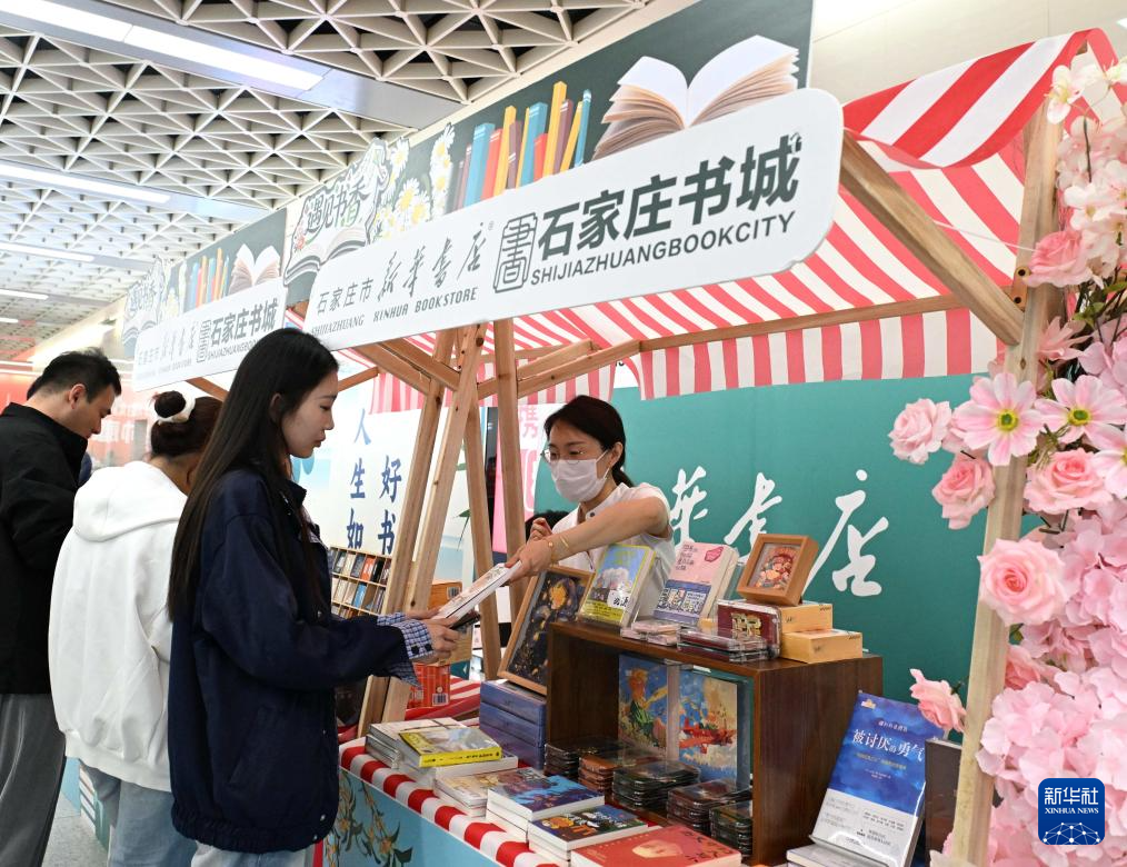 4月19日,市民在河北省石家庄市图书馆全民阅读主题活动现场挑选书籍。