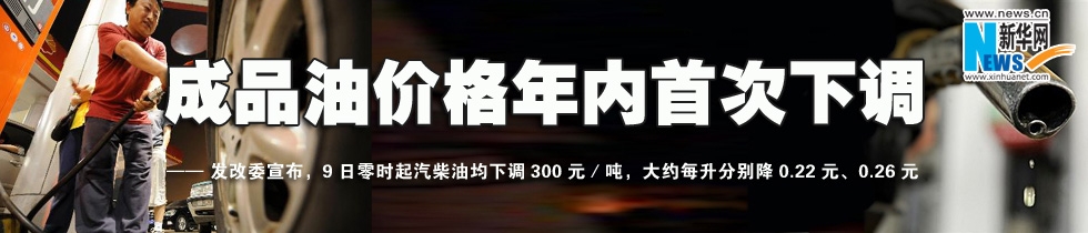 國家發(fā)展和改革委員會8日宣布,從9日零時起下調(diào)成品油最高零售價格,汽柴油均下調(diào)300元/噸,大約每升分別降0.22元、0.26元。 [詳細]