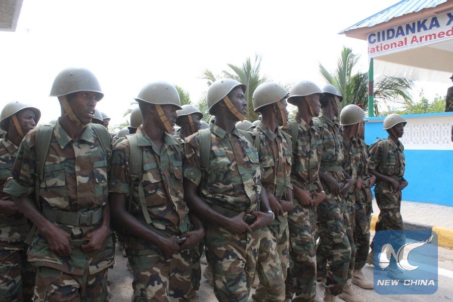 Somali military forces attend the Somali National Army (SNA) 57th anniversary celebrations at the Ministry of Defense in Mogadishu, capital of Somalia, April 12, 2017. The SNA on Thursday marked the 57th anniversary of its establishment in the capital Mogadishu and parts of the country on Wednesday. (Xinhua/Faisal Isse)