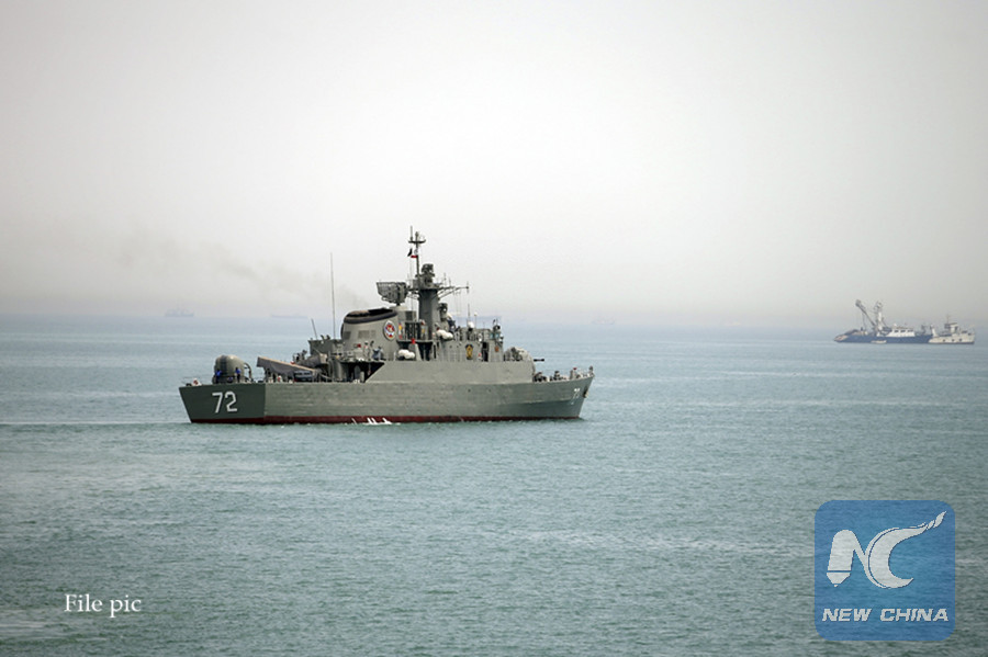 File photo: On April 7, 2015, file photo released by the semi-official Fars News Agency shows Iranian warship Alborz, foreground, prepares before leaving Iran's waters, at the Strait of Hormuz. (AP photo)