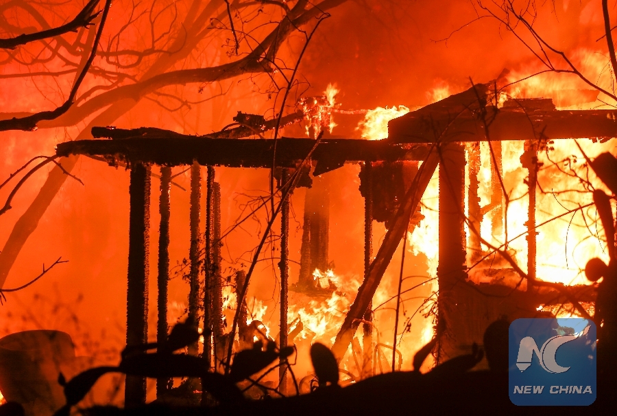 Wildfire burns a house in Malibu, California, the United States, on Nov. 9, 2018. (Xinhua/Zhao Hanrong)