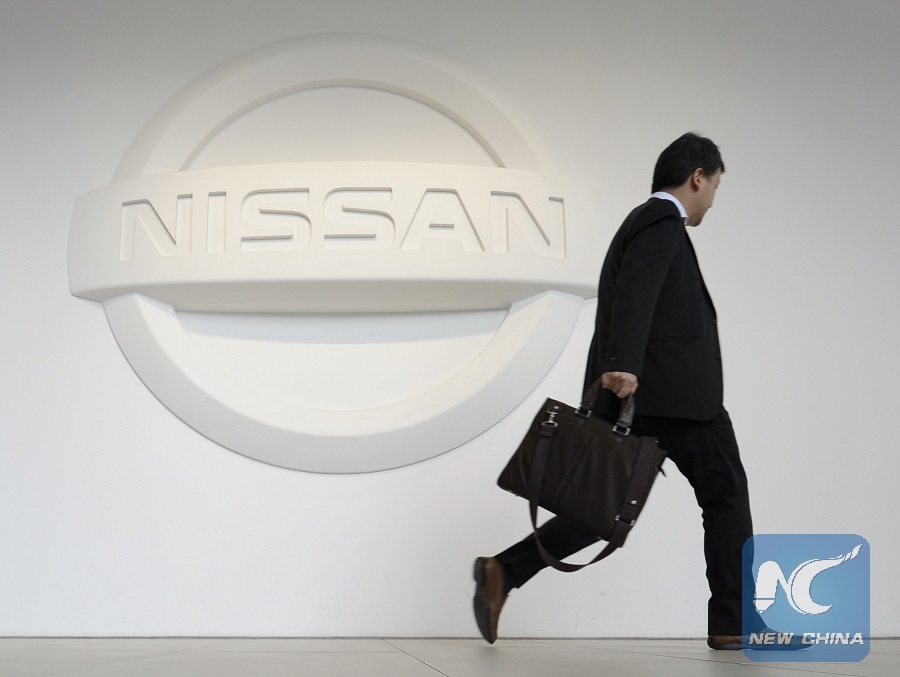In this file photo, a man walks past a logo of Nissan Motor at its headquarters in Yokohama, Japan, May 10, 2013. (Xinhua/Kenichiro Seki)