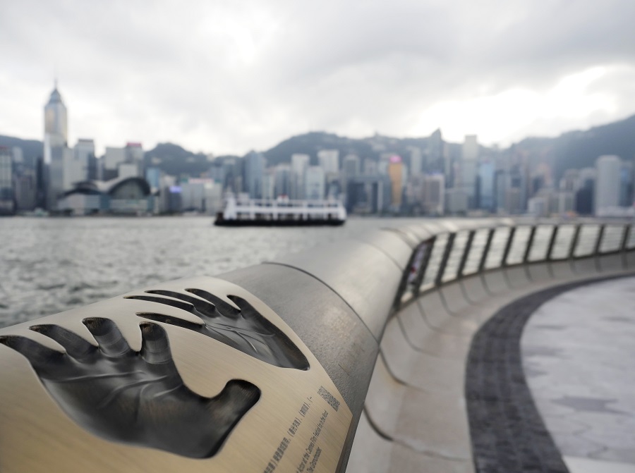 Photo taken on January 30, 2019 shows the handprints of a Hong Kong actor at the Avenue of Stars on the Tsim Sha Tsui waterfront in Hong Kong, south China, Jan. 30, 2019. (Xinhua/Wang Shen)