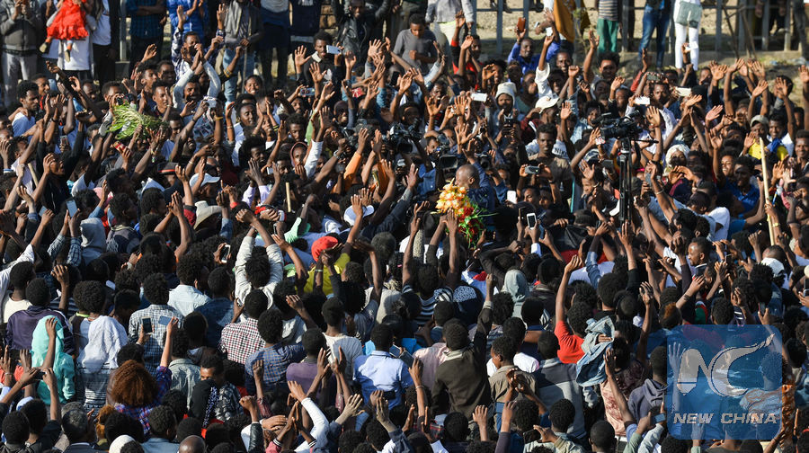 File photo shows people taking part in a demonstration along the streets of Addis Ababa, capital of Ethiopia, Jan. 17, 2018. (Xinhua/Michael Tewelde)