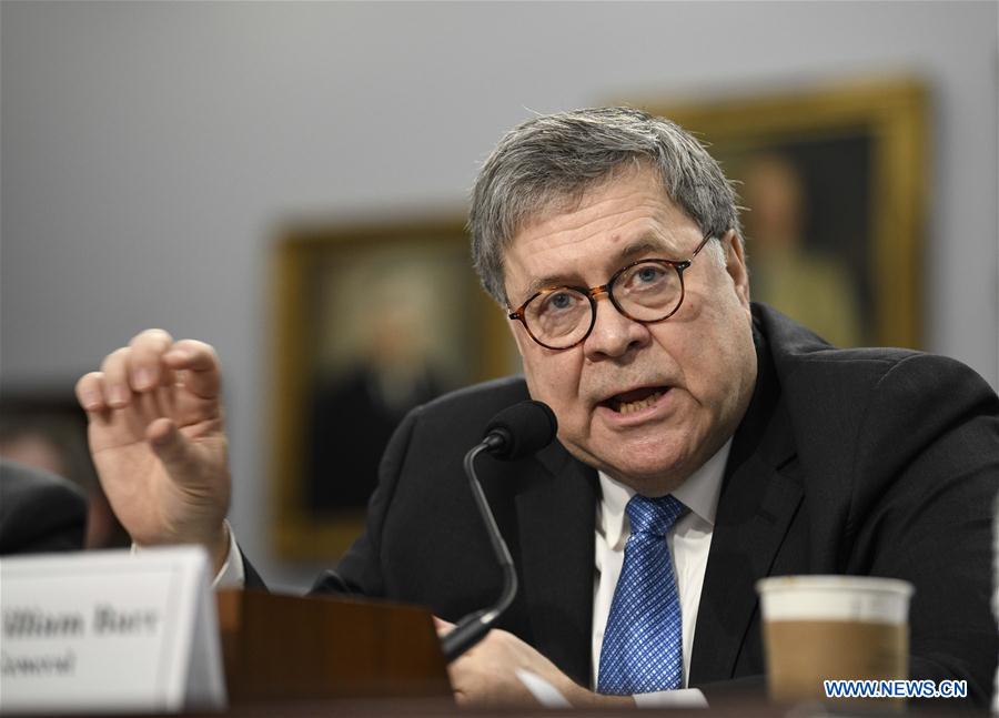 Photo taken on April 9, 2019 shows U.S. Attorney General William Barr testifying before the Subcommittee on Commerce, Justice, Science, and Related Agencies, in Washington D.C., the United States. The U.S. Justice Department on April 18 released a redacted version of special counsel Robert Mueller's investigative report on the Russia probe. (Xinhua/Liu Jie)