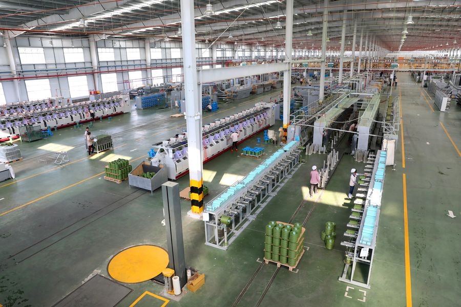 Photo taken on Oct. 26, 2018 shows a scene inside the factory building of Bellinturf Industrial (Vietnam) Company Limited in Long Jiang Industrial Park in Tien Giang province, Vietnam. The 600-hectare industrial park has become one of the largest and most advanced industrial parks built by Chinese companies in Vietnam. (Xinhua/Wang Di)