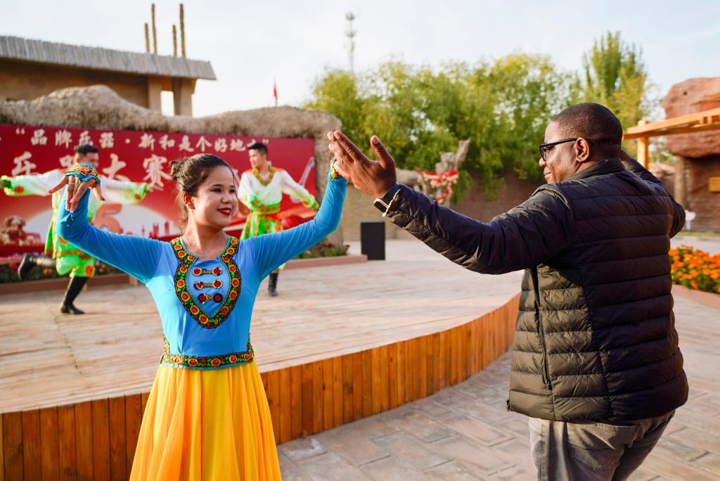People visit the Kizilgaha Beacon Tower in Kuqa City, northwest China's Xinjiang Uygur Autonomous Region, Oct. 31, 2024. (Xinhua/Hu Huhu)Aerial photo taken on Oct. 22, 2020 shows the autumn scenery of desert poplar (populus euphratica) forest along the Tarim River in Xayar County, northwest China's Xinjiang Uygur Autonomous Region. (Xinhua/Hu Huhu)Aerial photo taken on June 20, 2021 shows cars moving along Duku Highway in northwest China's Xinjiang Uygur Autonomous Region. (Xinhua/Gao Han)An attendee of the 6th World Media Summit interacts with a dancer in Jiayi Village of Xinhe County, northwest China's Xinjiang Uygur Autonomous Region, Oct. 15, 2024.(Xinhua/Chen Shuo)Villagers play the traditional Uygur musical instrument in Jiayi Village of Aksu Prefecture, northwest China's Xinjiang Uygur Autonomous Region, Oct. 30, 2024. (Xinhua/Chen Shuo)An artist performs Shaghydi, an ethnic sport game of the Uygur ethnic minority, in Awat County of Aksu Prefecture, northwest China's Xinjiang Uygur Autonomous region, Oct. 26, 2019. (Xinhua/Sadat)A drone photo shows a cotton picker operating in a field in Awat County of Aksu, northwest China's Xinjiang Uygur Autonomous Region, Oct. 24, 2024. (Xinhua/Gao Han)Aerial photo taken on Oct. 16, 2020 shows a combine harvester reaping rice crop in Tohula Township of Wensu County, Aksu Prefecture, northwest China's Xinjiang Uygur Autonomous Region.(Xinhua/Hu Huhu)A farmer sorts harvested apples at a garden in Aksu of northwest China's Xinjiang Uygur Autonomous Region, Oct. 21, 2020.(Xinhua/Hu Huhu)A farmer checks the growth of tomatoes at a vegetable base in Aykol Town of Aksu, northwest China's Xinjiang Uygur Autonomous Region, March 24, 2024. With the help of modern agricultural technologies, the vegetable base in Aykol Town of Aksu has become an important base for vegetable supply in southern Xinjiang. (Xinhua/Ding Lei)