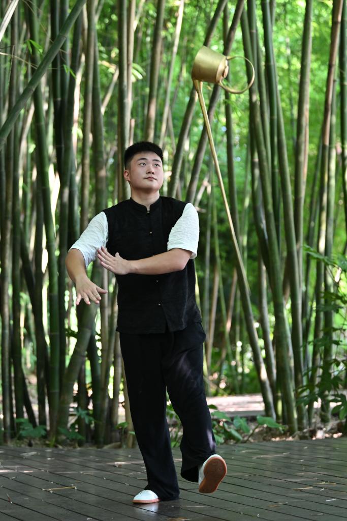 This photo taken on July 28, 2025 shows Min Pengfei exercising serving tea with a long spout kettle at a tea house in Chengdu, southwest China's Sichuan Province. (Xinhua/Xu Bingjie)This photo taken on July 28, 2025 shows Min Pengfei exercising serving tea with a long spout kettle at a tea house in Chengdu, southwest China's Sichuan Province. (Xinhua/Xu Bingjie)This photo taken on July 28, 2025 shows Min Pengfei brandishing a sword in Chengdu, southwest China's Sichuan Province. (Xinhua/Xu Bingjie)This photo taken on July 28, 2025 shows Min Pengfei exercising tossing and catching a long spout kettle in Chengdu, southwest China's Sichuan Province. 24-year-old Min was born in Ya'an of Sichuan, a city renowned for its tea and tea culture. (Xinhua/Xu Bingjie)This photo taken on July 30, 2025 shows people relaxing at a tea house in Chengdu, southwest China's Sichuan Province. (Xinhua/Xu Bingjie)