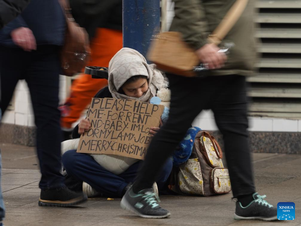 A woman seeks help on a subway station platform in New York City, the United States, on Dec. 17, 2025. (Xinhua/Zhang Fengguo)