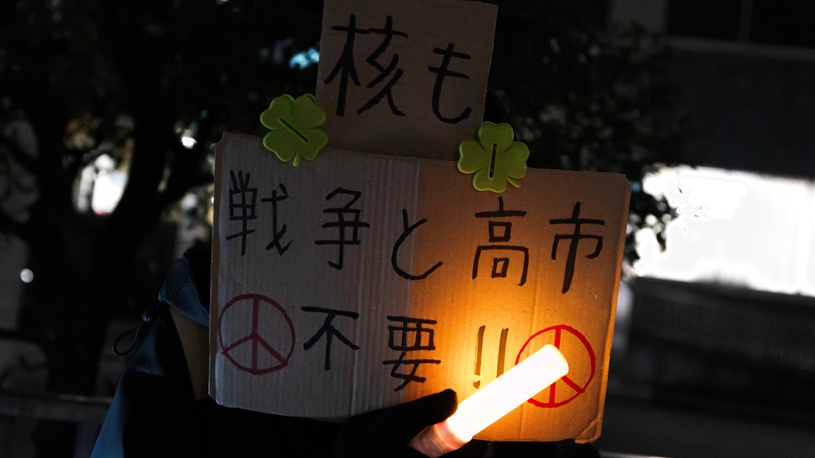 Japanese people held a rally on Tuesday evening in front of the Prime Minister's Office in Tokyo, demanding Prime Minister Sanae Takaichi retract her erroneous remarks on Taiwan and criticizing comments by a senior government official advocating nuclear armament.