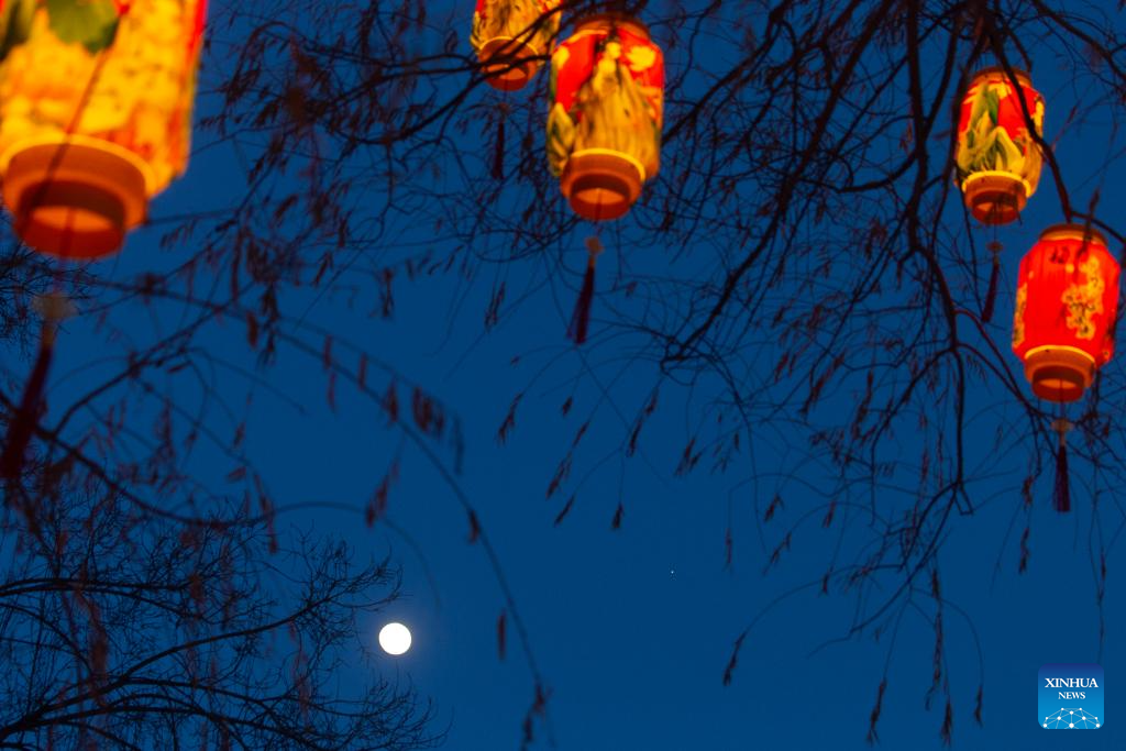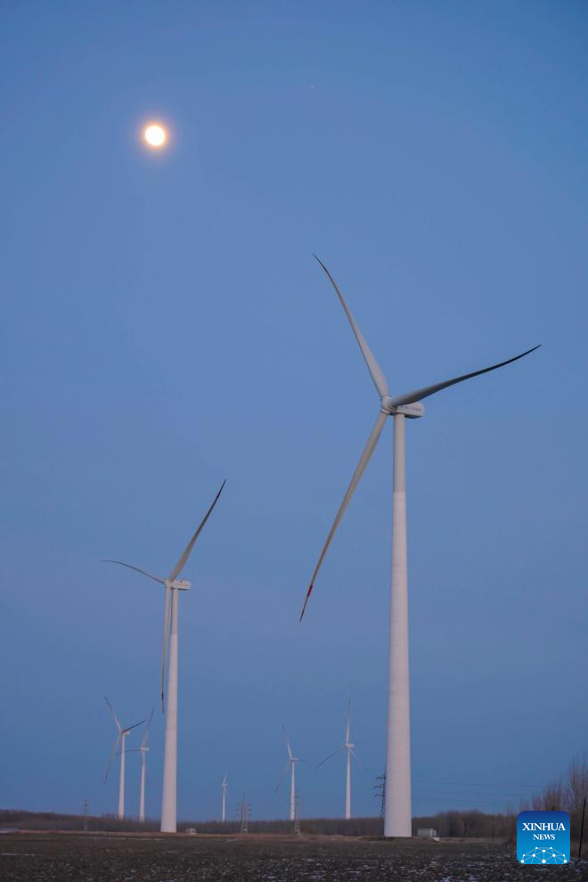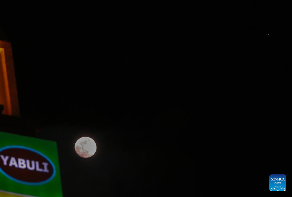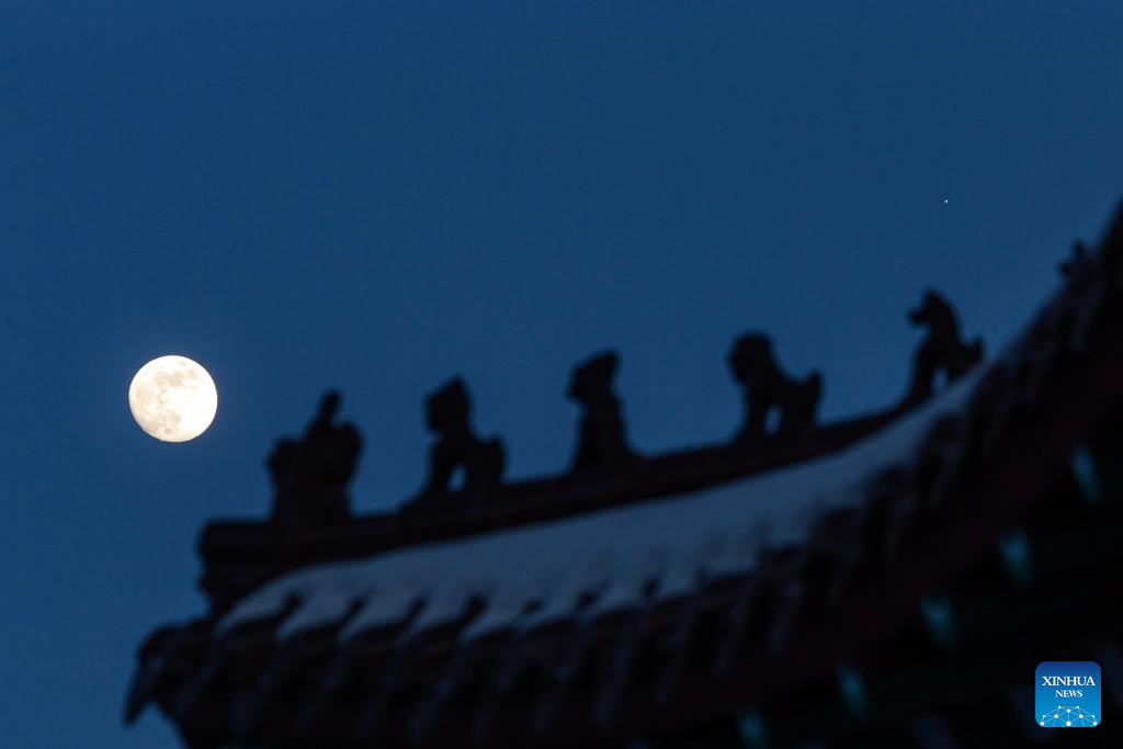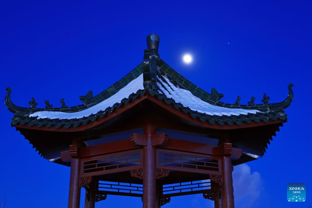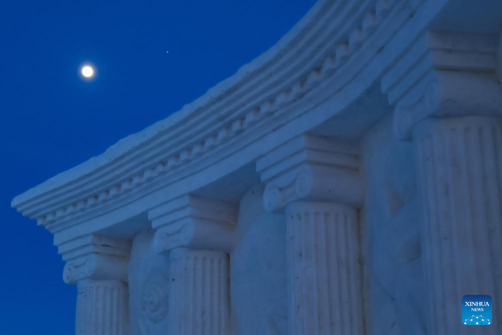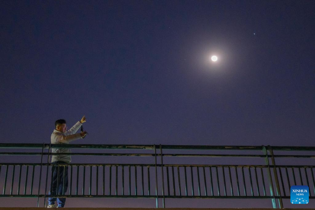 This photo taken on Jan. 31, 2026 shows a conjunction of Jupiter and the waxing gibbous moon over the sky of Qiqihar City, northeast China's Heilongjiang Province. A conjunction of Jupiter and the waxing gibbous moon appeared over the sky on Saturday. (Photo by Wang Yonggang/Xinhua)