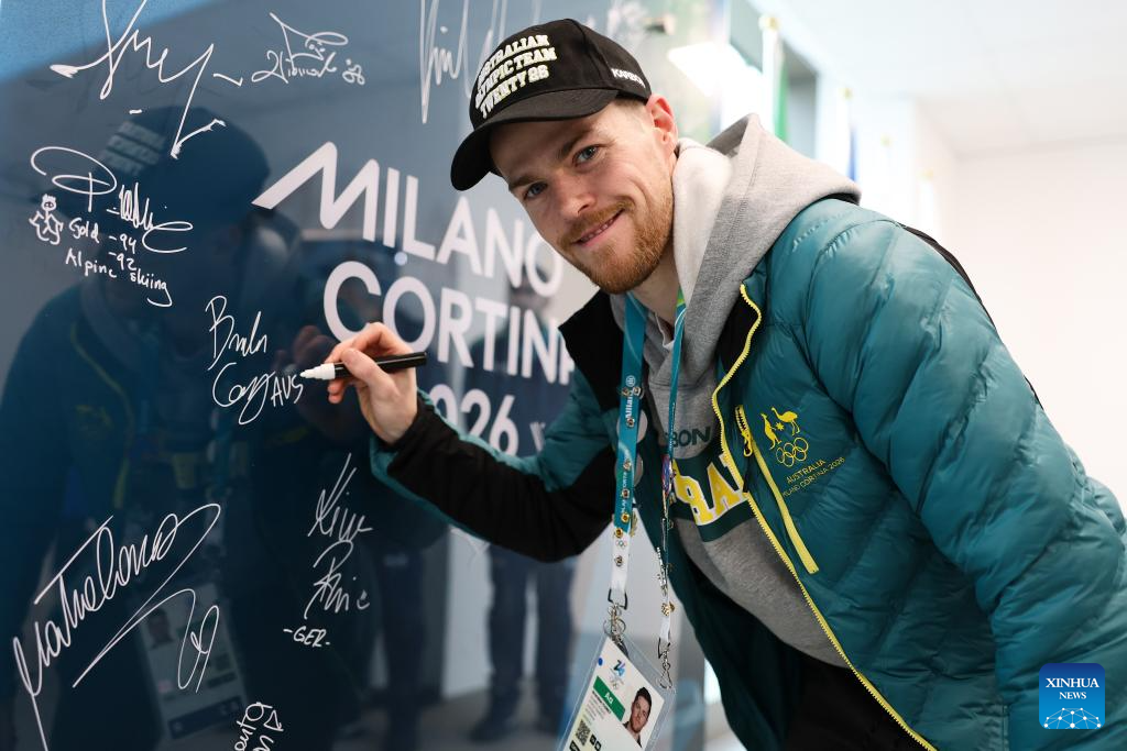 Brendan Corey of Team Australia attends the Inauguration of the Olympic Truce Mural with the IOC EB and the IOC Athletes' Commission (AC) at the Olympic Village in Milan, Italy, Feb. 2, 2026. (Andreas Rentz/Pool via Xinhua)