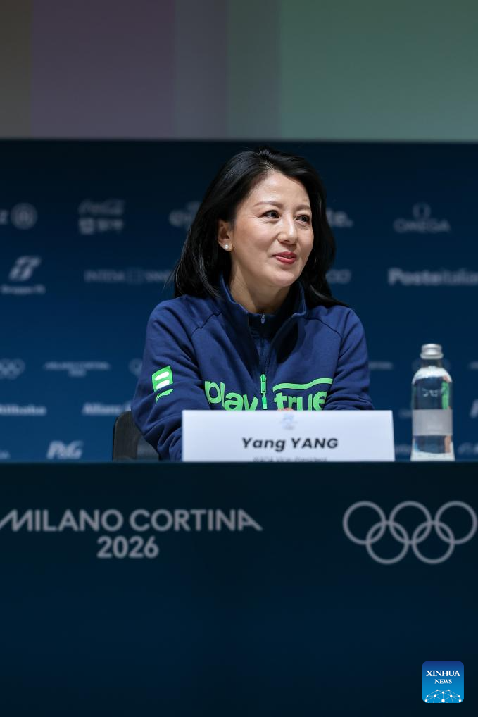 World Anti-Doping Agency (WADA) Vice-President Yang Yang attends a press conference at the main press center of the Milan-Cortina 2026 Olympic Winter Games, in Milan, Italy, on Feb. 5, 2026. (Xinhua/Zhang Cheng)