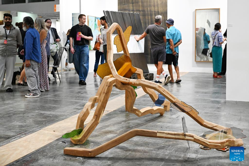 The Cape Town Art Fair 2026 kicked off here on Friday. This year's edition takes place from Feb. 20 to 22 at the Cape Town International Convention Center, featuring 126 exhibitors from 34 global cities and showcasing works by more than 490 artists, with over 30,000 visitors expected. (Photo by Xabiso Mkhabela/Xinhua)