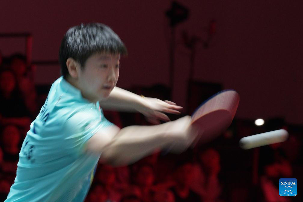 Sun Yingsha of China hits a return during the women's singles round of 32 match between Sun Yingsha of China and Elizabeta Samara of Romania at the World Table Tennis (WTT) Singapore Smash 2026 in Singapore on Feb. 25, 2026. (Photo by Then Chih Wey/Xinhua)