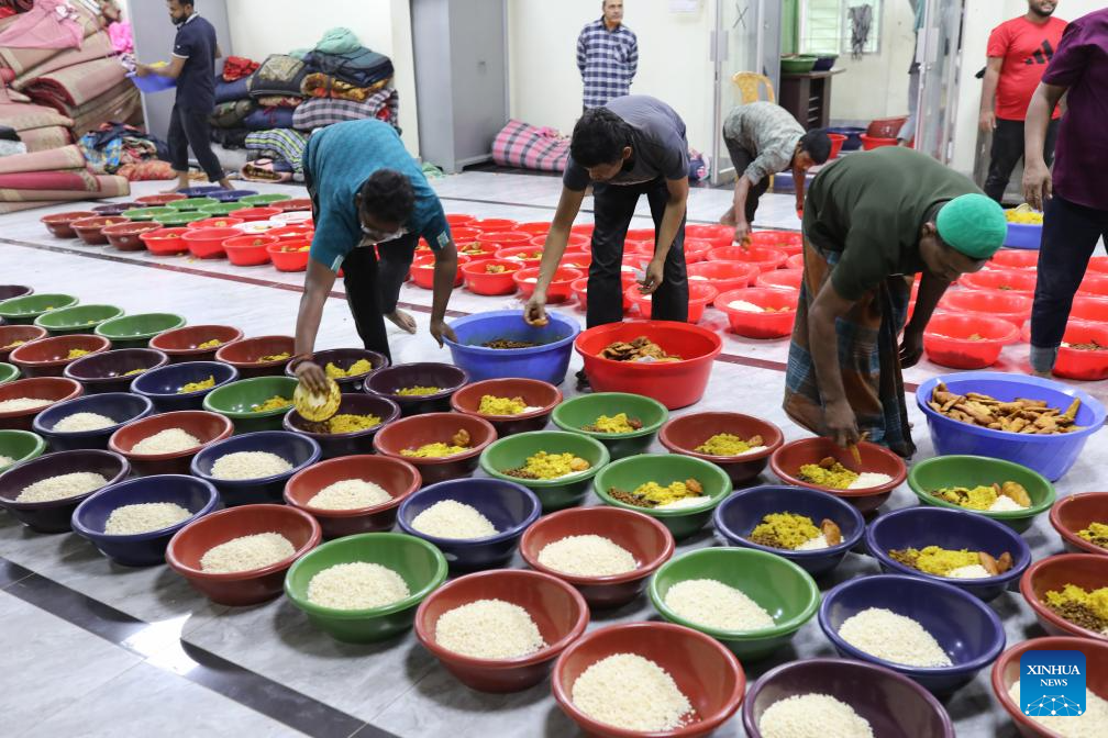 Volunteers prepare meals during Ramadan in Dhaka, Bangladesh, Feb. 24, 2026. (Photo by Habibur Rahman/Xinhua)