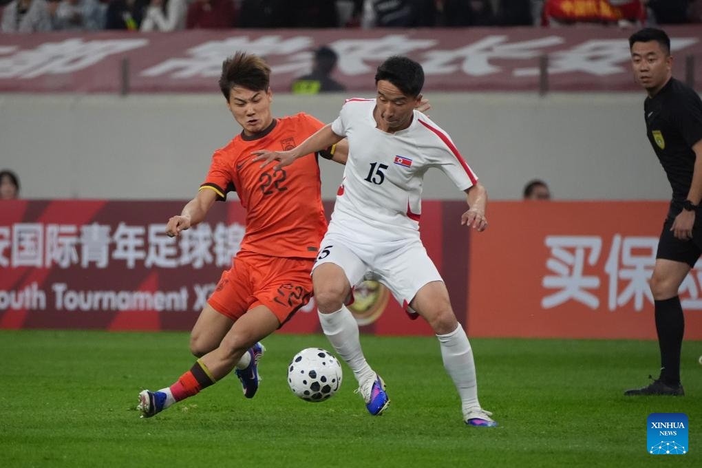 XI'AN, March 28 (Xinhua) -- Xiang Yuwang converted a late penalty as China's under-23 men's team managed a 1-1 draw against the DPR Korea at the International Youth Tournament here on Saturday.