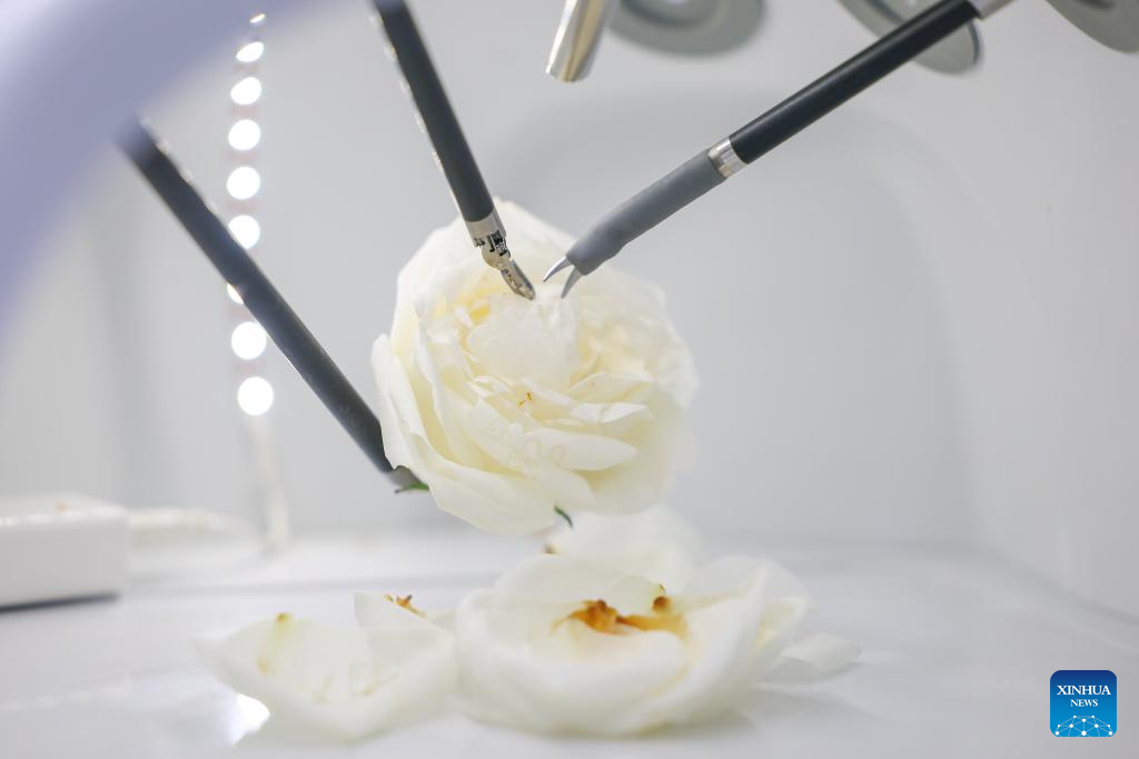 A visitor experiences a surgical robot during the 2026 China Medical Equipment Conference & Medical Equipment Exhibition held at Chongqing International Expo Center in southwest China's Chongqing Municipality, March 29, 2026. The four-day exhibition kicked off here on Thursday, with more than 800 companies participating and showcasing numerous innovative achievements and cutting-edge technologies in medical equipment. (Xinhua/Huang Wei)
