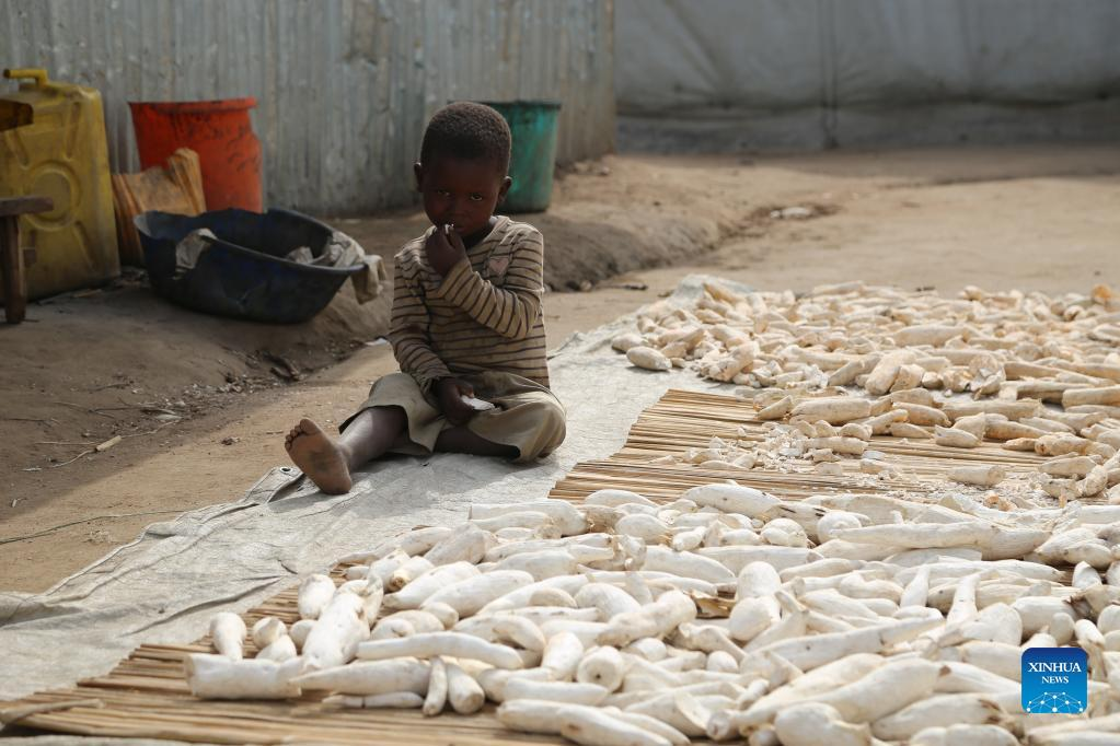 A refugee washes clothes in a camp for internally displaced persons (IDPs) in Ituri province, northeastern Democratic Republic of the Congo, March 17, 2022. Despite all the challenges, peace and state authority will be restored in Ituri, a violence-laden province in northeastern Democratic Republic of the Congo (DRC), reassured Lieutenant-General Johnny Luboya, Ituri's military governor, in a recent exclusive interview with Xinhua. (Photo by Alain Uaykani/Xinhua)