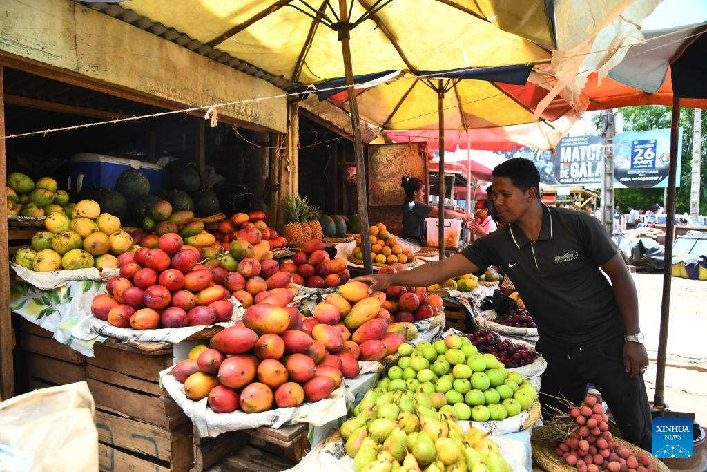 This photo taken on Jan. 16, 2026 shows a vendor at a fruit market in Antananarivo, capital of Madagascar. (Photo by Sitraka Rajaonarison/Xinhua)