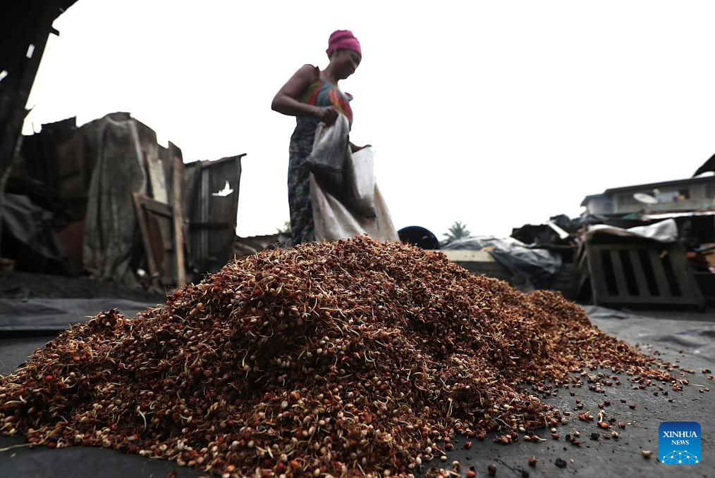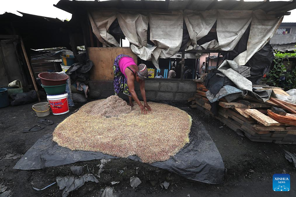 A woman dries sorghum to make dolo in Abidjan, Cote d'Ivoire, Jan. 20, 2026. Dolo, also known as millet beer, is a traditional fermented grain beverage widely consumed in Cote d'Ivoire and several West African countries. Brewed mainly from sorghum or millet, it has a low alcohol content and a mildly sour, slightly sweet taste, and is commonly consumed at community gatherings, weddings and traditional ceremonies. (Photo by Yvan Sonh/Xinhua)