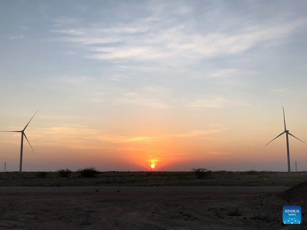 This undated file photo shows a view of the Aysha II Wind Power Plant in Somali Regional State, Ethiopia. Ethiopian Prime Minister Abiy Ahmed on Saturday inaugurated the first phase of the Aysha II Wind Power Plant in Somali Regional State, stressing that clean energy development is central to the country's long-term economic transformation. (Dongfang Electric Corporation/Handout via Xinhua)
