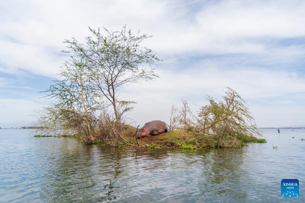 A hippo rests on a small island in Lake Naivasha in Nakuru County, Kenya, Feb. 1, 2026. World Wetlands Day is observed annually on Feb. 2 to raise global awareness of the vital role of wetlands for people, nature and culture.