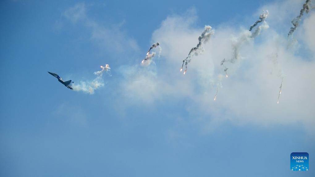 A Royal Malaysian Air Force (RMAF) SU-30MKM fighter jet performs during the media preview for the 10th Singapore Airshow in Singapore, Feb. 1, 2026. The airshow will be held from Feb. 3 to 8 in Singapore. (Photo by Then Chih Wey/Xinhua)