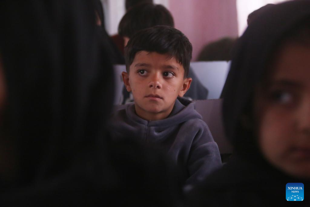 An Afghan child attends a class at an educational center in Kabul, Afghanistan, March 26, 2026. (Photo by Saifurahman Safi/Xinhua)